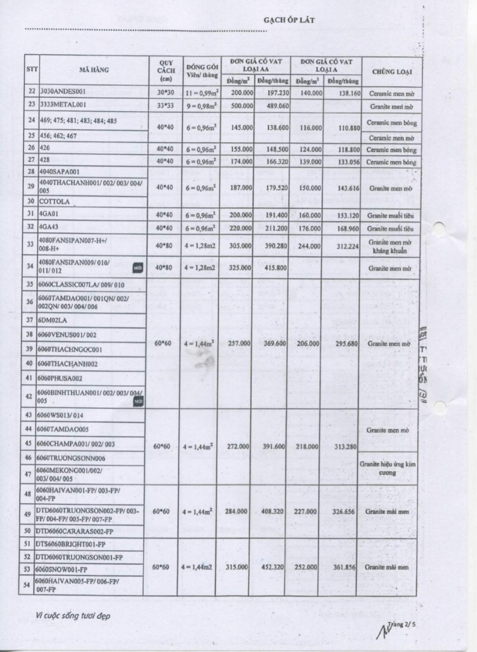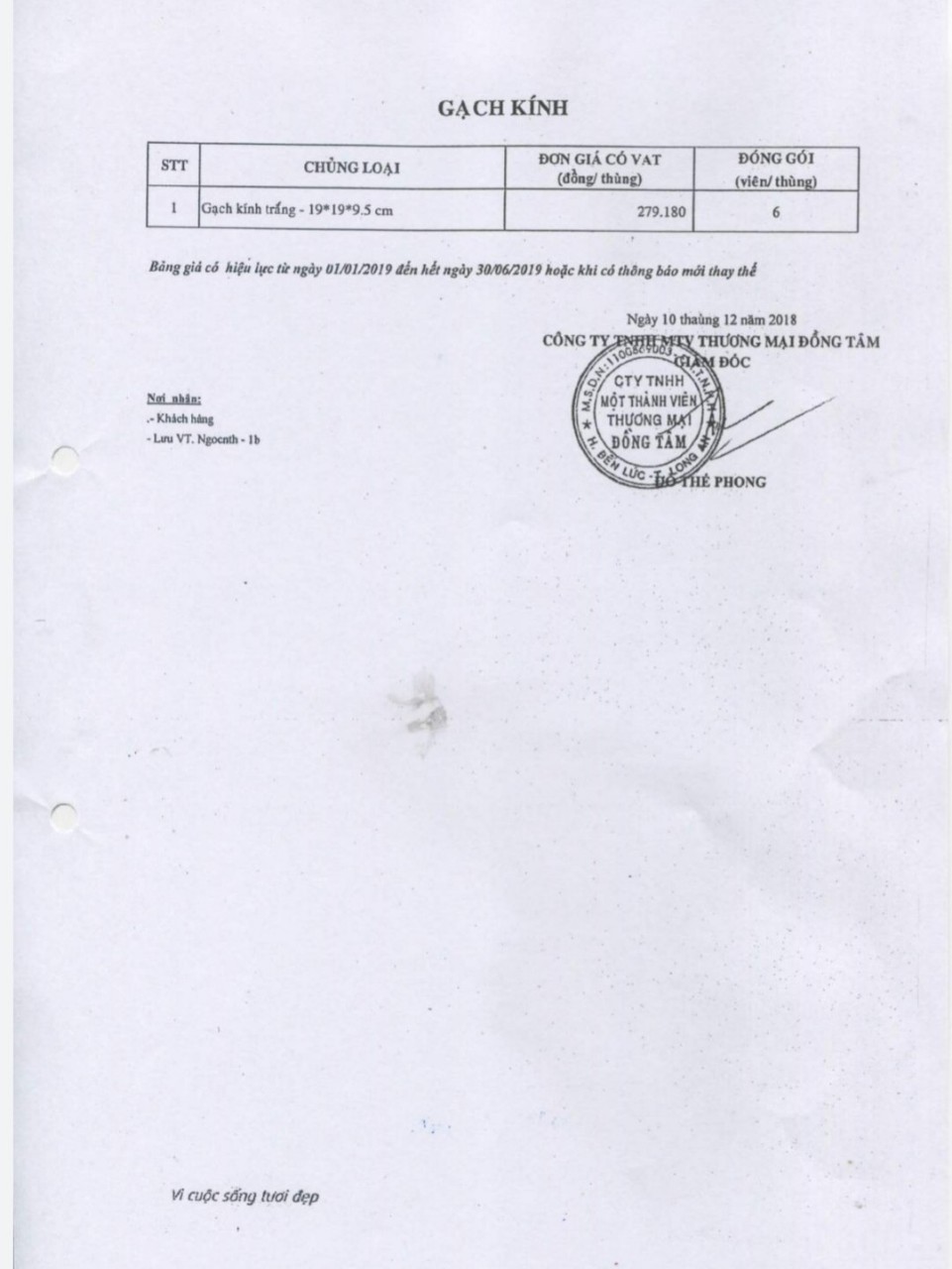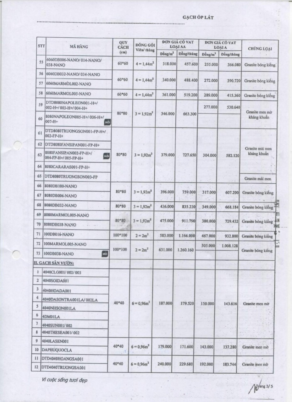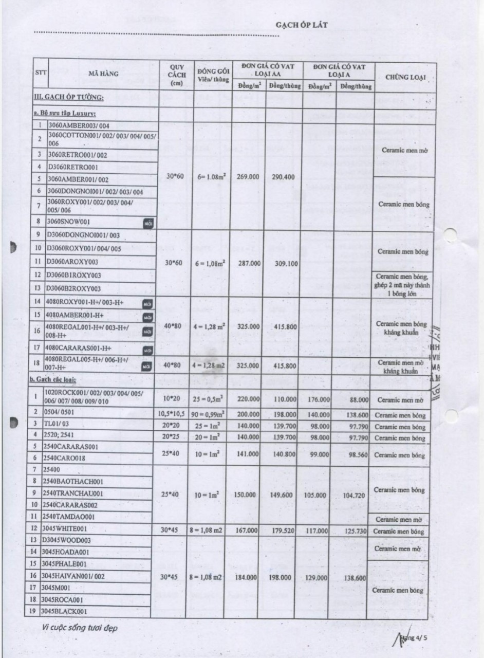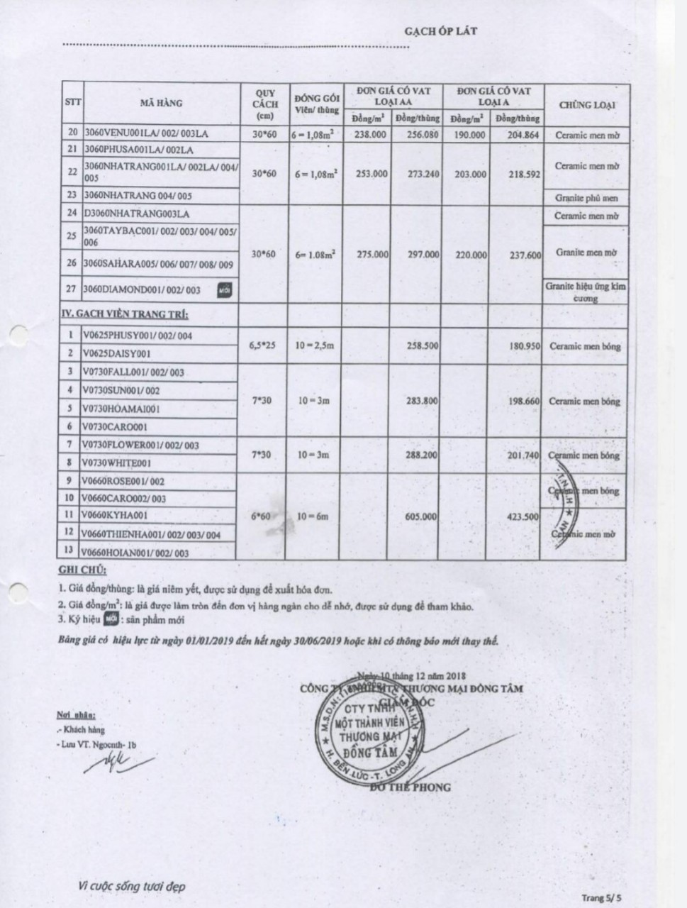 BẢNG BÁO GIÁ GẠCH ĐỒNG TÂM MỚI NHẤT NĂM 2020