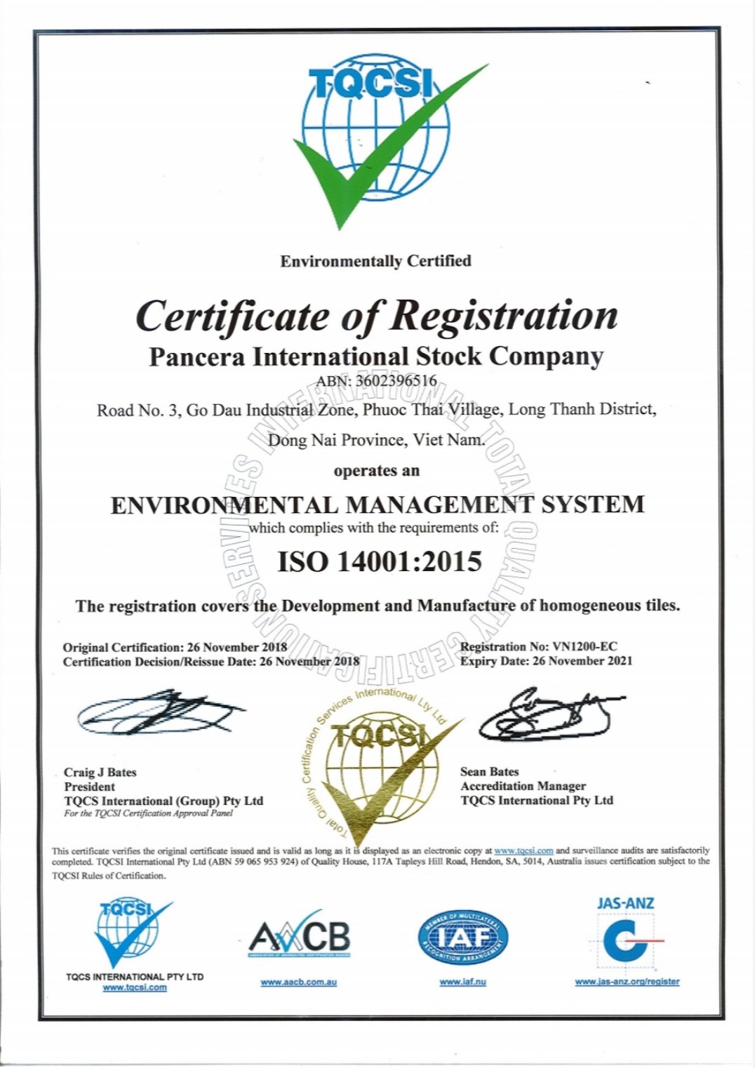 - Gạch Pancera Dreamtek là sản phẩm gạch được sản xuất từ nguồn nguyên liệu ổn định chất lượng cao theo dây chuyền công nghệ tiên tiến của Tây Ban Nha, Italia cùng với quy trình kiểm tra chất lượng nghiêm ngặt từ khâu nguyên liệu, sản xuất đóng gói... Tạo nên các sản phẩm chất lượng tốt ổn định. Nhà máy gạch Pancera Dreamtek là nhà máy đầu tiên của Việt Nam đạt tiêu chuẩn chất lượng ISO 9002