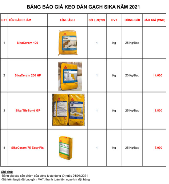 BÁO GIÁ KEO DÁN GẠCH SIKA