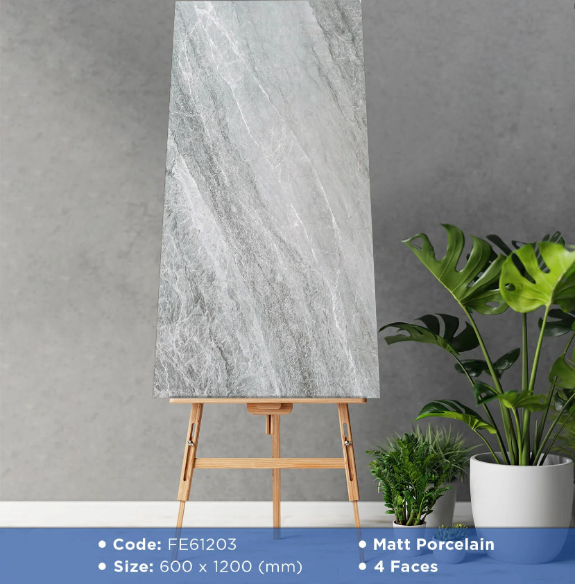 Gạch ốp lát kích thước 300×600 của FILEZ TILES với hiệu ứng men mờ và chất xương gạch Semi Porcelain là sự lựa chọn hoàn hảo để tạo nên không gian ở độc đáo và tinh tế. Với kích thước 300x600mm, Bộ Gạch FS3601-FS360A-FS3602 mang lại sự linh hoạt cho việc thiết kế và lắp đặt. Hiệu ứng men mờ tạo ra một bề mặt nhẹ nhàng, mang lại cảm giác mềm mại và đẹp mắt. Chất xương gạch Semi Porcelain cung cấp sự bền chắc và độ bền cao, giúp sản phẩm này trở nên dễ dàng vệ sinh và chống trầy xước. Với những tính năng đặc biệt này, gạch ốp lát FILEZ TILES sẽ làm hài lòng khách hàng và giúp bạn tạo ra không gian sống đẹp mắt và độc đáo tại ngôi nhà của mình.