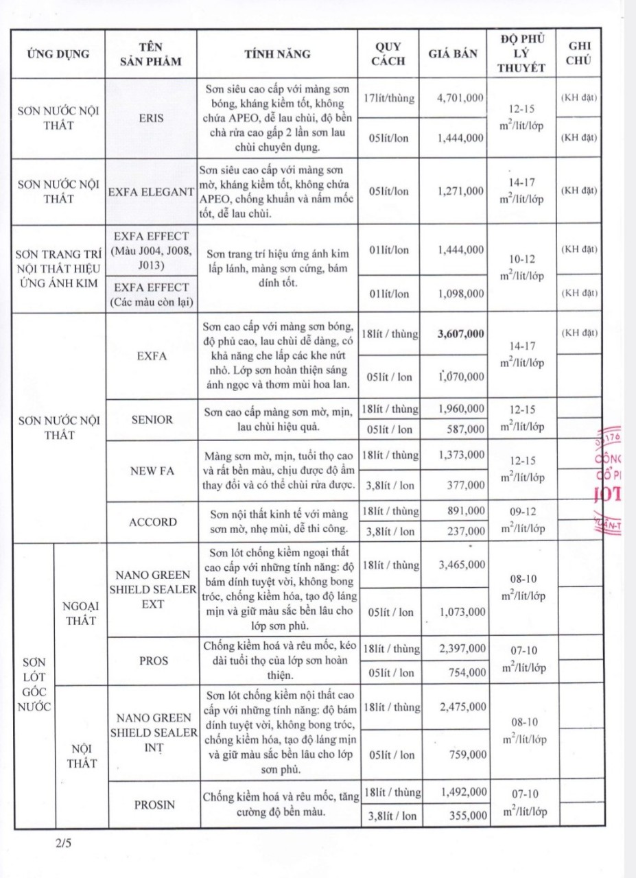 BÁO GIÁ SƠN JOTON NĂM 2023