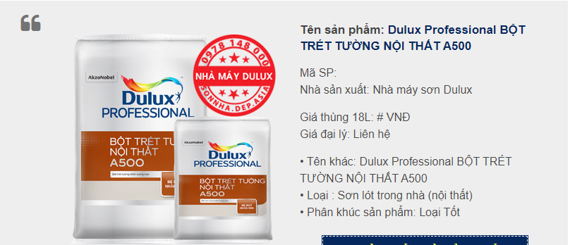 1.BỘT TRÉT NỘI THẤT DULUX PROFESSIONAL A500