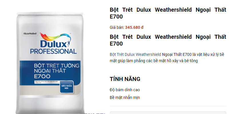 3. THÔNG SỐ KỸ THUẬT CỦA BỘT TRÉT NỘI THẤT DULUX PROFESSIONAL E700