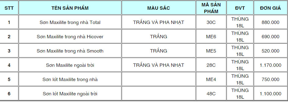 - Nắm được bảng giá sơn maxilite trong nhà, nội thất giúp bạn có thể so sánh được giá cả của các dòng sơn khác nhau trên thị trường và từ đó có được những lựa chọn cũng như quyết định chính xác và có nhiều lợi thế nhất.