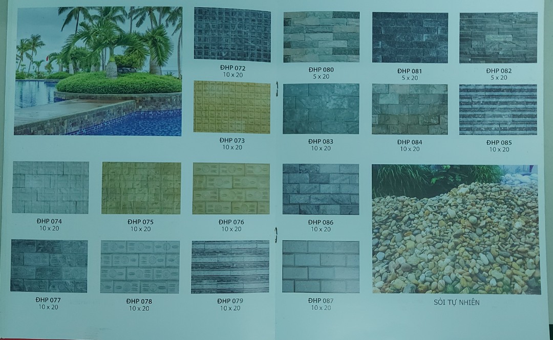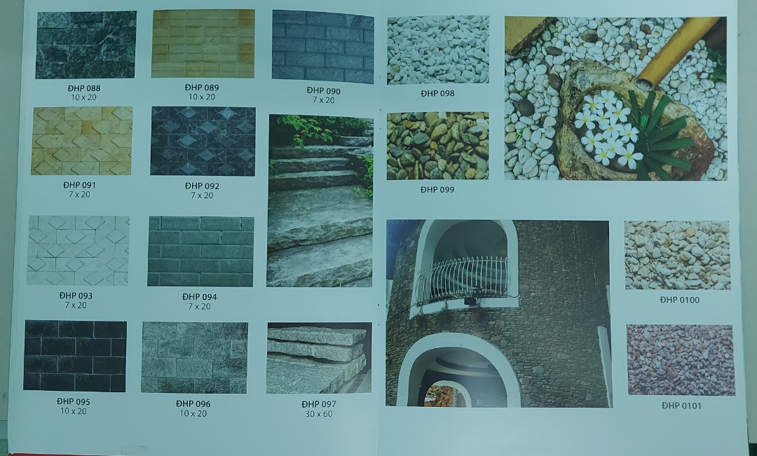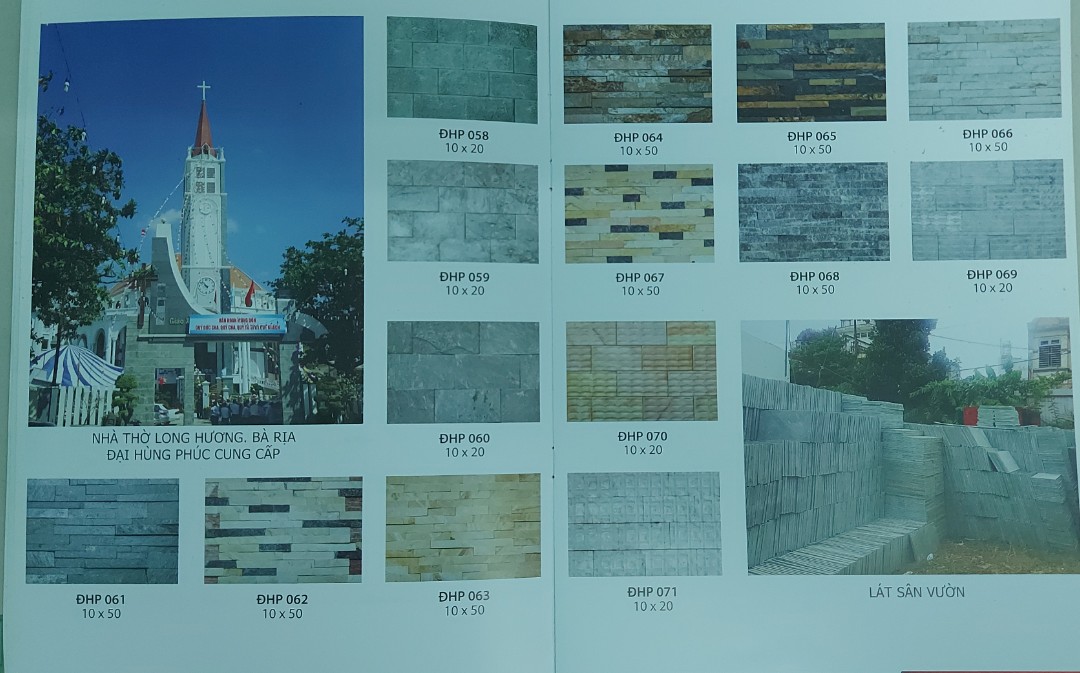 Loại đá: Đá bóc lồi, đá chẻ, đá răng lược, đá mài bóng, đá băm mặt, đá ghép…