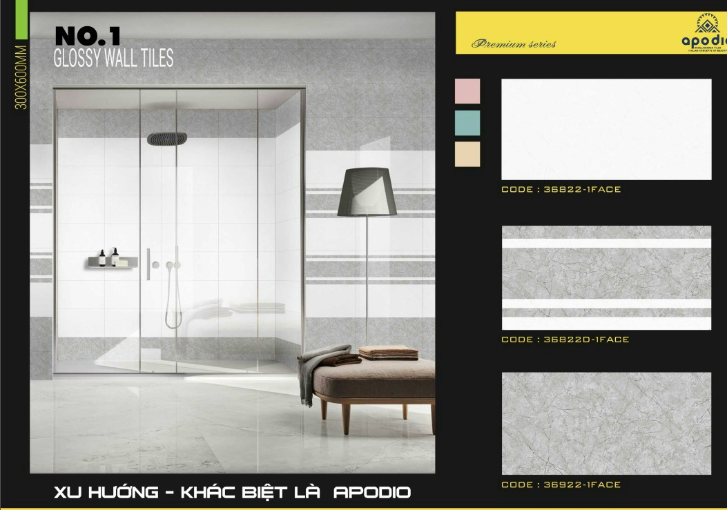 Gạch Apodio được sản xuất trên hiện đại được nhập khẩu từ châu âu và đài loan. Sự thống nhất và đồng đều gần như tuyệt đối.