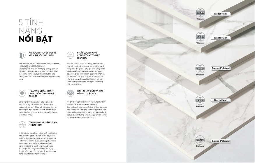 – Mẫu mã đa dạng, phù hợp với mọi công trình: Gạch kích thước lớn mẫu mã rất đa dạng từ họa tiết cho tới màu sắc, bề mặt gạch, thích hợp sử dụng cho mọi công trình xây dựng.