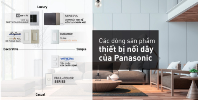 Tại thị trường Việt Nam, Panasonic cung cấp 7 dòng công tắc, ổ cắm điện dân dụng sau: