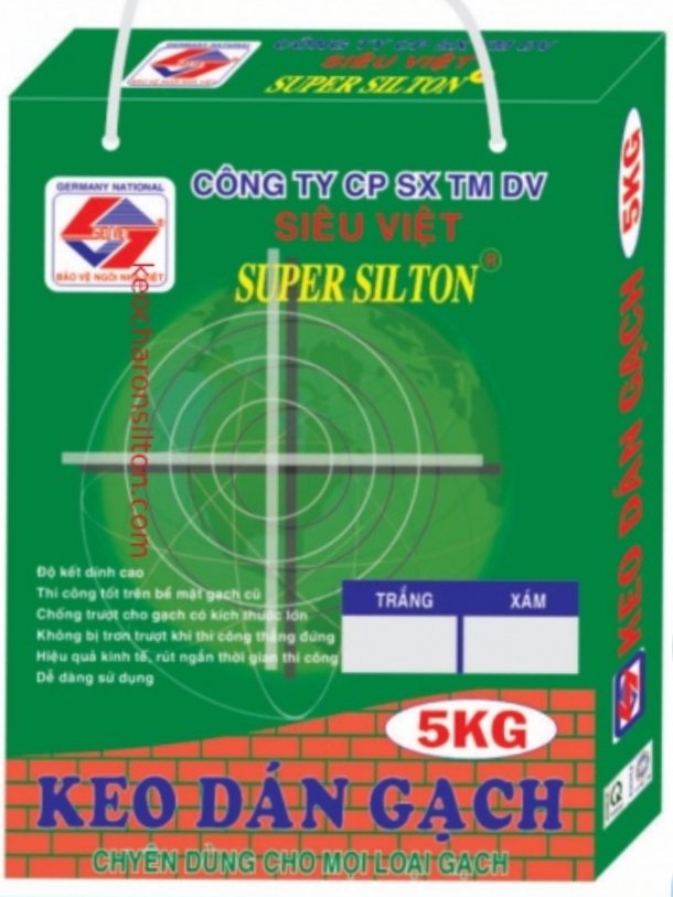 Keo dán gạch ốp tường lót sàn SILTON là loại vữa keo trộn sẵn, có độ bám dính tốt, cho phép thi công cực nhanh và không gây ố mầu gạch.