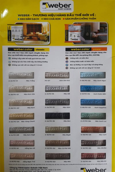 Hướng dẫn thi công keo chà ron webercolor classic PO-111 Màu Trắng PO-122 Màu Kem PO-164 Màu Xanh Lục PO-132 Màu Xanh Ngọc PO-154 Màu Nâu Đỏ