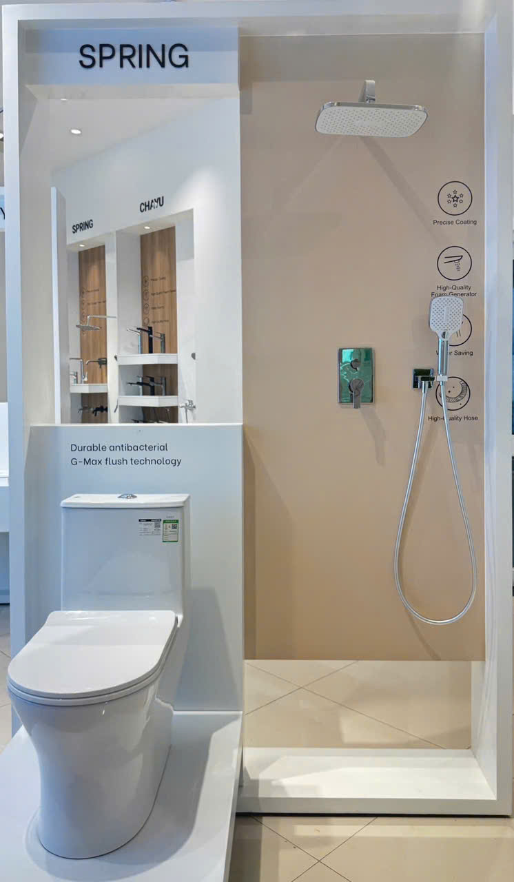 Hệ thống xả xoáy giúp làm sạch nhanh, không gây ồn, tiết kiệm nước tối đa – đặc biệt phù hợp với điều kiện sử dụng tại Việt Nam.